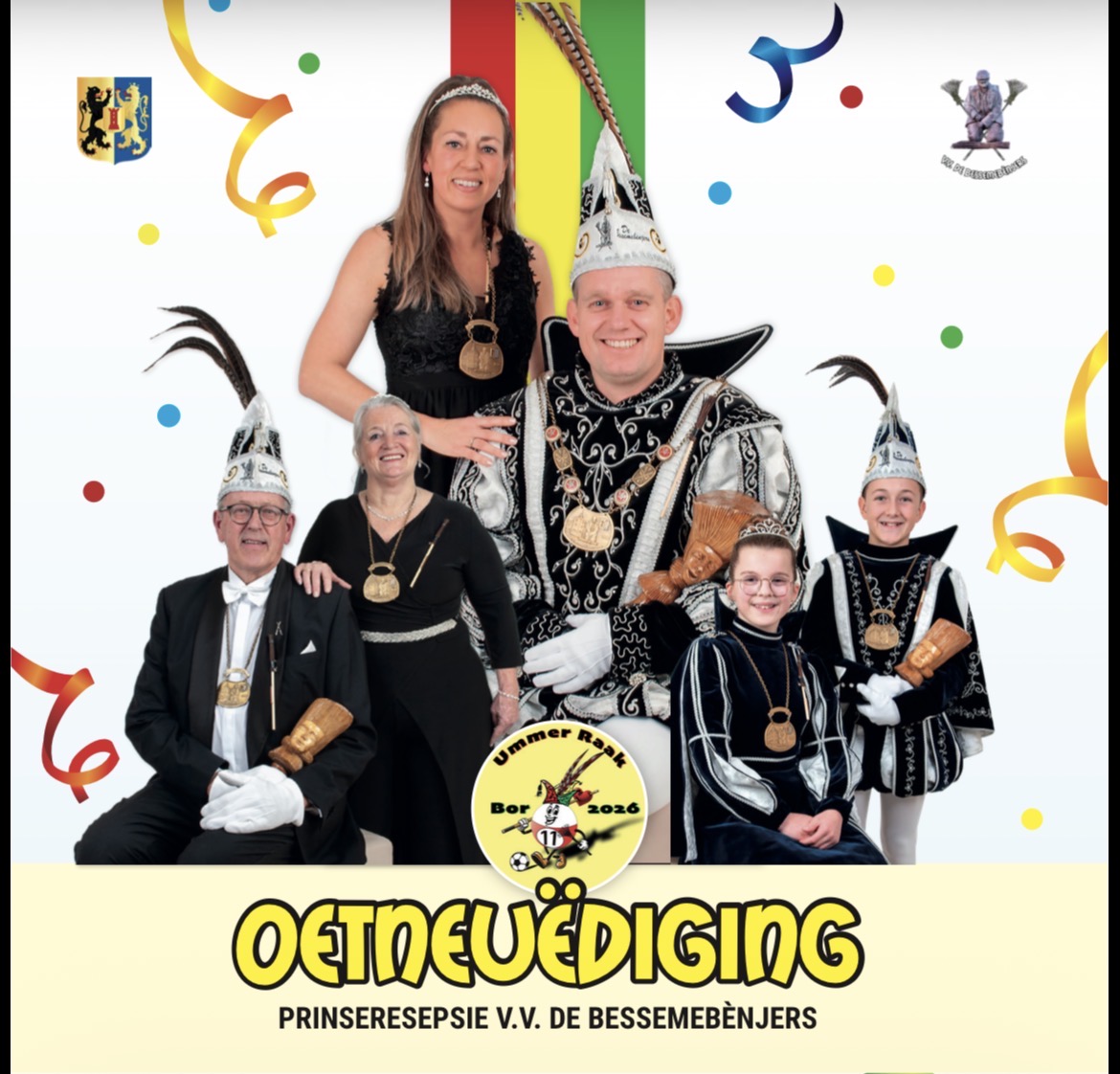 same viere veer vastelaovend in bor Lèste nuuts Aansjaonde zaoterdig sjteit de prinseresepsie op ’t program. Lees verder » 3 februari 2026 Zaoterdig 7 fibberwarie – Bessem verkoup Lees verder » 30 januari 2026 Gemeintelik Vastelaovestreffe Lees verder » 29 januari 2026 >>opgeave optoch 2026 klik hier<< >>bestelle book 7x11 vastelaovend in bor klik hier << Eësvolgende aktiviteit 04feb Seniejorezitting 14:10 Aldenhof , Zuyderland zorgcentrum 07feb Prinseresepsie 19:10 Gemeinsjapshoes No event found! Ós prinsepare van 2026 Prins youri ii en prinses anouk Jeugprins rens I en Jeugprinses jill Senioreprins dick I en Senioreprinses marlies